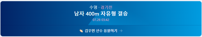 | 18:00 | 수영 남자 200m 자유형 조 | 김우민 | 경기 정보 더보기 |